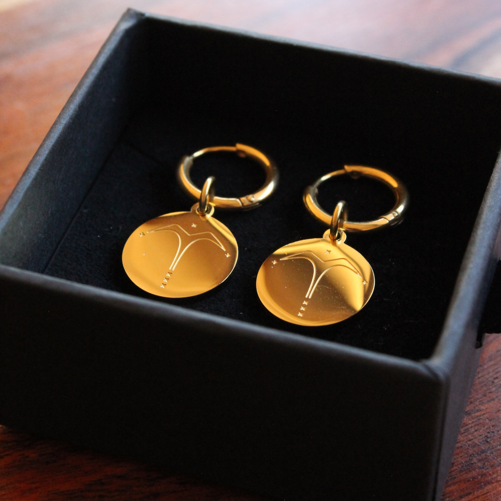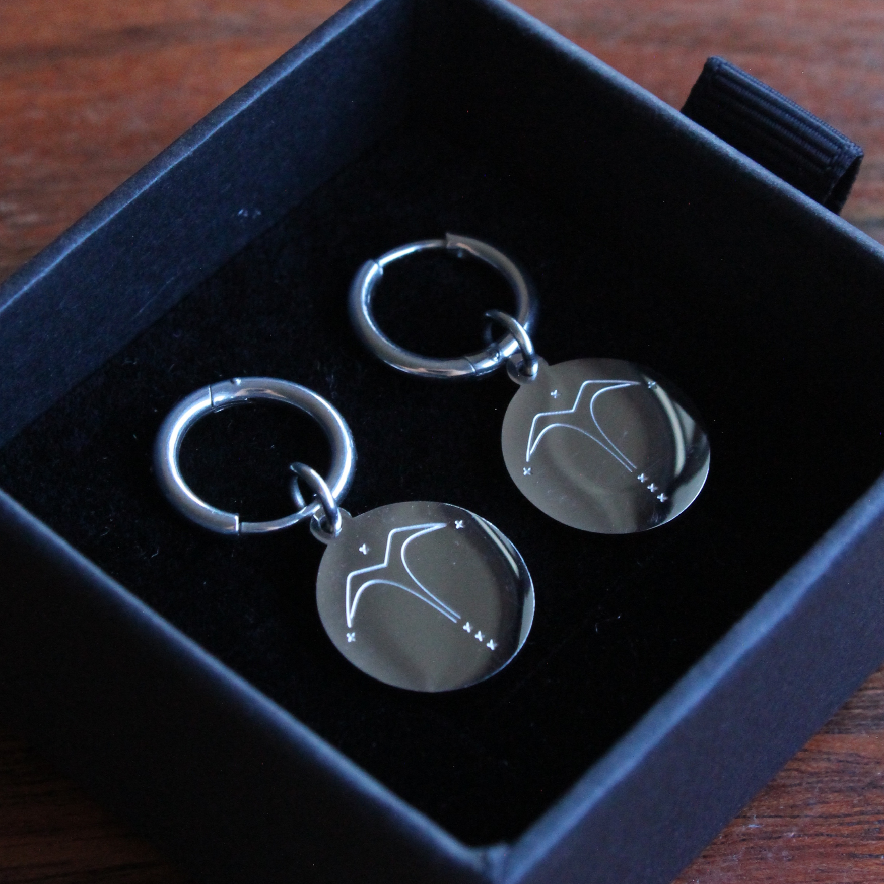 - 10mm Huggie earrings, 15mm Aho pendant. Double sided engraving.
