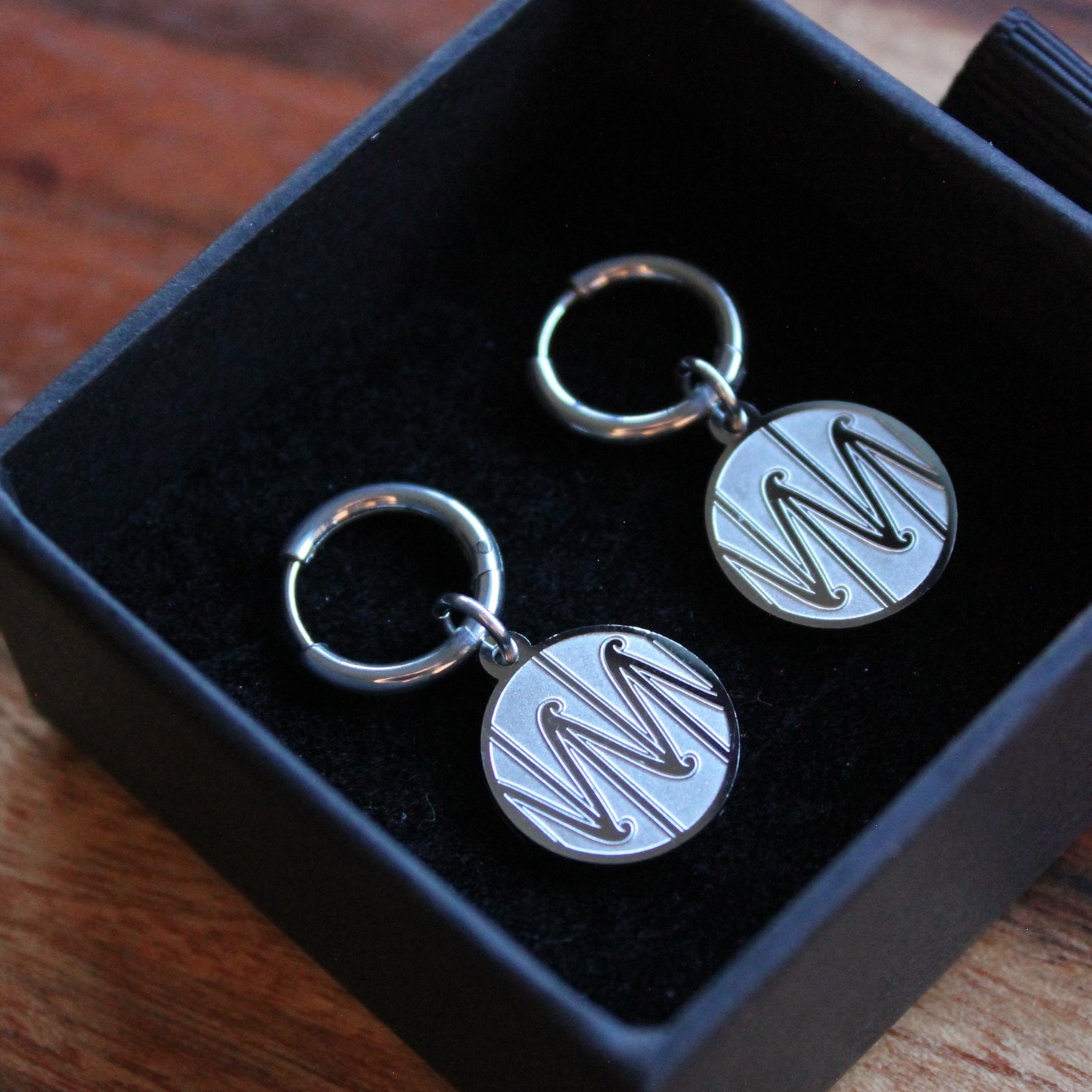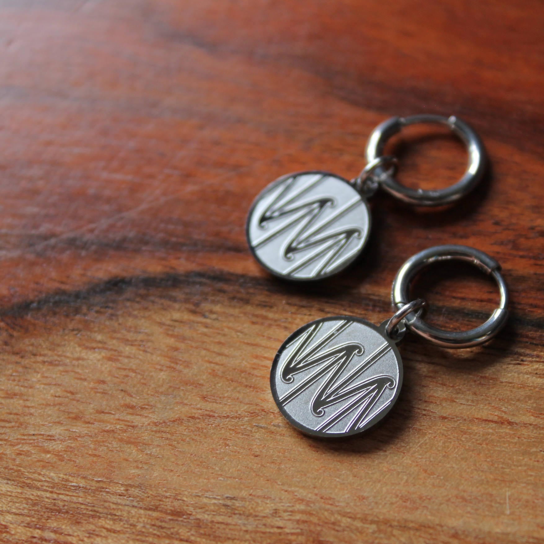 - 10mm Huggie earrings, 15mm Te Hau a Uru pendant charm with double sided engraving.
